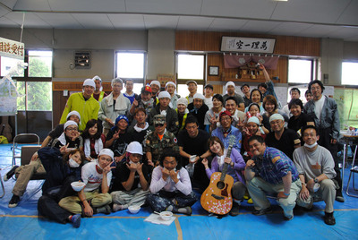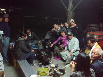 泥まみれの作業服のまま、笑顔で手拍子をしてくれる皆さん。