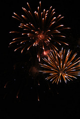 私はござを敷いて寝ころび、目の前にあがる花火を楽しみました♪